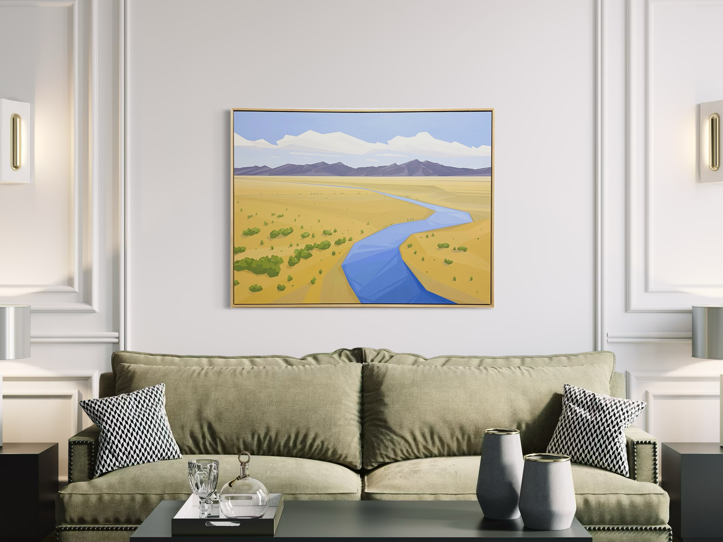 Original painting: AVAILABLE. 48x36 inches on gallery-wrapped canvas. Professionally framed in neutral wood floating frame.